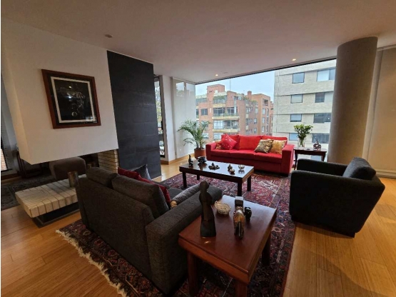 Sala comedor, chimenea convencional, estudio independiente con balcon, ventaneria piso a techo, super iluminado, baño auxiliar
