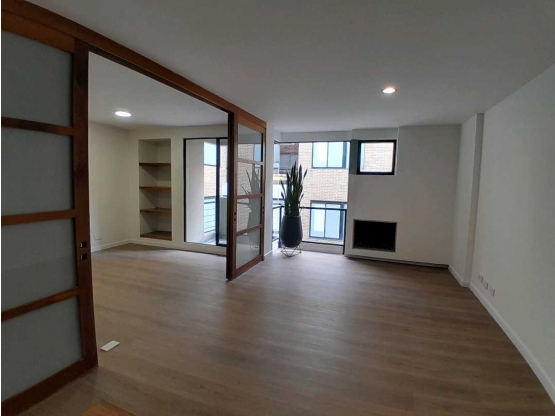 Vendo Apto en San Patricio para estrenar remodelacion 100%, 61m2, 1 habitación muy amplia capacidad para cama king size, puertas corredizas en madera natural, balcón, walk in closet y baño privado, sala comedor con chimenea tradicional, baño social, cocina tipo americano con comedor auxiliar, meson en granito, excelente almacenamiento y buenos acabados, zona de lavandería independiente con lavadero, conexión de gas para secadora, espacio para torre. 2 parqueaderos independientes. Edificio muy bien ubicado a pasos de la calle 109, calle muy tranquila. Edificio de 20 años, vigilancia 24h, 12 aptos en total
